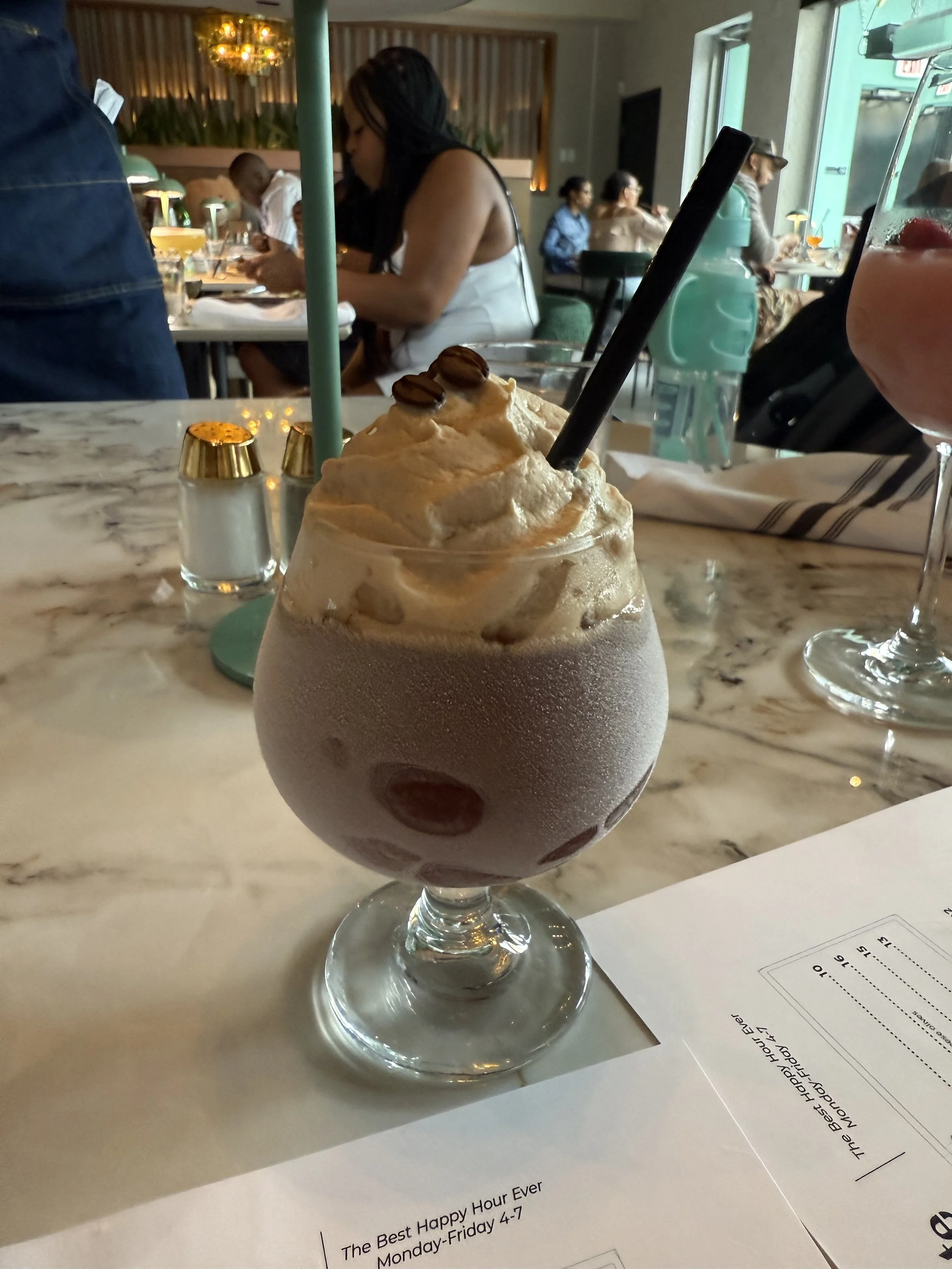 We ordered the frozen espresso martini, the froze’ and a regular espresso martini, the drinks were well balanced and delicious. I will note that I brought my son here and it’s not really a place for children. It’s more of a grown and sexy vibe.